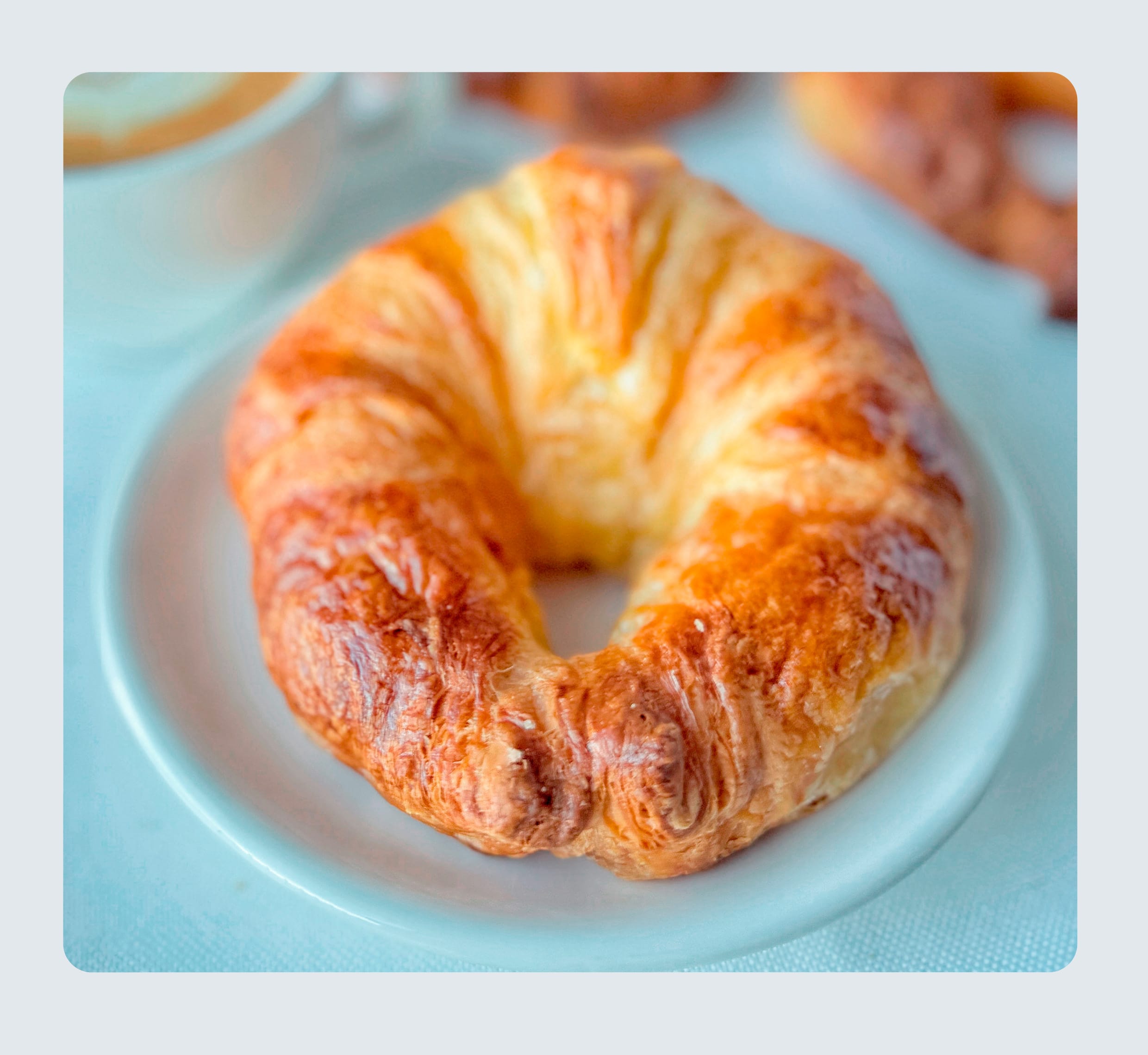 Horneado cada mañana con masa de hojaldre de primera calidad y elaborado con mantequilla 100% natural, es crujiente por fuera, tierno y esponjoso por dentro. Cada bocado te transporta a nuestras cafeterías , haciendo que tu día comience con un toque de elegancia y sabor. No importa si lo acompañas con café, té o chocolate caliente, siempre será un acierto.